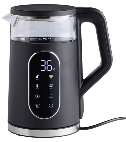 Med denne kraftfulde elkedel med 1,7 L kapacitet og en effekt på 1.850–2.200W bliver det nemt at opvarme vand hurtigt og præcist. Den trådløse konstruktion med en 360° roterbar base gør det enkelt at placere kedlen og tage den af basen fra alle vinkler. Den har 4 forudindstillede temperaturer (40/70/80/90 °C), elektronisk styring og en hukommelseslagring for de 10 seneste indstillinger, så du altid kan lave te, kaffe eller andre varme drikke præcis, som du vil have dem.