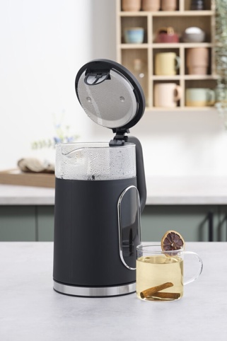 Elkedlen har en praktisk 2-timers hold-varm-funktion, der sikrer, at vandet forbliver perfekt tempereret. Desuden har den en automatisk lågåbning samt en stor åbning, der gør rengøringen nem og enkel.
