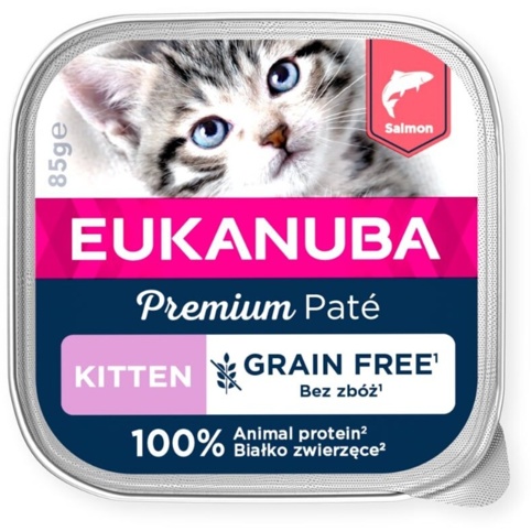 Når du skal forkæle din kat, kan du supplere maden med lækker paté, der har en lækker smag af laks. Patéens bløde konsistens gør den nem for kattekillinger at spise – især når deres tænder og kæber stadig er ved at udvikle sig. Vådfoderet indeholder vitaminer og mineraler, som styrker en sund vækst, stærke knogler og tænder samt en sund pels. Denne pakke indeholder 12 stk. paté á 85 g og er velegnet til kattekillinger fra 1 til 12 måneder.