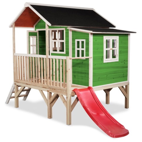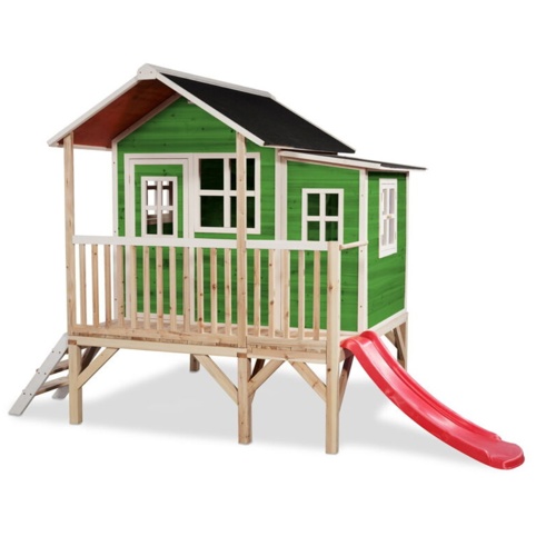 Er du på udkig efter et flot og hyggeligt legehus? Så kan du her finde dette fine Loft 350 legehus fra Exit Toys, som har et skandinavisk design – og derfor passer perfekt til de fleste haver. Huset har en fin lille terrasse, tilbygning og rutsjebane, som fuldender husets udtryk. Du kan pynte med lille bord-/bænkesæt, sandkasse o.l. omkring huset og indbyde til endnu mere leg omkring.