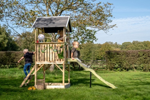 Legetårnet må maks. belastes med 100 kg, og egner sig til børn fra 3 år. Der medfølger ingen jordankre. Produktet er FSC®-mærket.