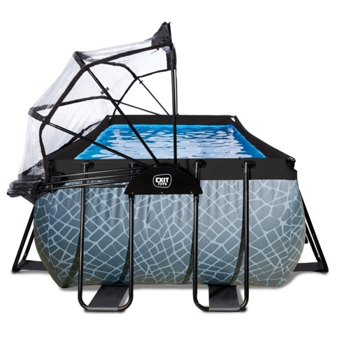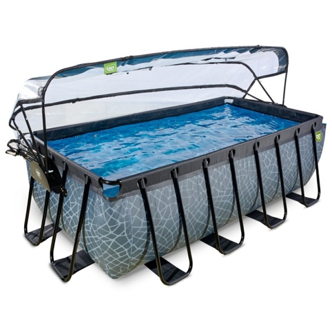 Grå pool med gennemsigtigt, rummeligt pooltag