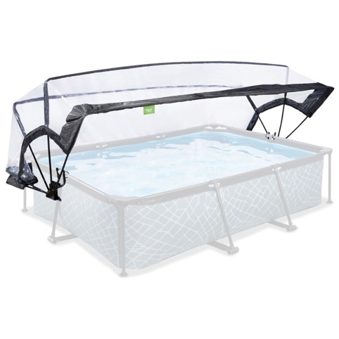 Vil du gerne have en pool fra Exit? Så kan du her finde dette super-smarte tag, som du kan sætte oven på badebassinet, og på den måde kan du undgå snavs, blade o.l. i vandet. Taget hjælper også til, at vandet ikke bliver kølet ned i regnvejr, og så vil I også kunne bruge bassinet i regnvejr, da I vil kunne bade, imens taget er slået op.
