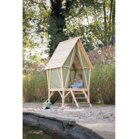 Hvis dine børn godt kan lide at lave huler, så er dette legehus et super-godt valg. Her får du nemlig et legeprojekt, som kombinerer legehus og telt i ét. Trærammen skaber stabilitet og giver sikkerhed som et legehus, hvor det grønne lærred giver en hyggelig fornemmelse og telt-agtig følelse. Lærredet er med magnetisk-lukning. Legeprojektet er perfekt til leg som camping, safari o.l.