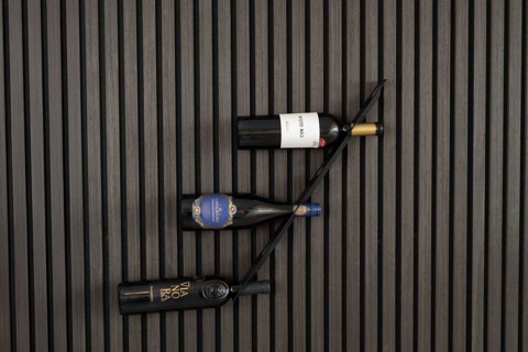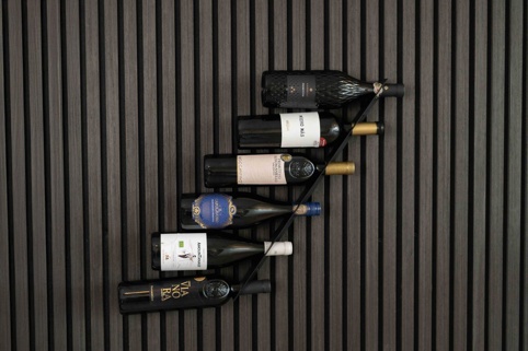 Indret dit akustikpanel med FibroTechs vinreol, hvor du både kan få plads til vin og skabe et æstetisk udtryk til rummet. Hylden har plads til 6 vinflasker og kommer i et stilrent ståldesign, der en flot kontrast til akustikpanelets trælook.