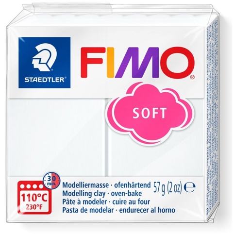 Fimo Soft-serien består af modellervoks i forskellige farver. Modellervoksen er blød og smidig, hvilket gør den let at arbejde med og dermed ideel til begyndere og hobbykunstnere. Den kan desuden blandes med modellervoksen fra Fimo Effect og Fimo Professional-serierne, så du kan skabe dine egne nuancer. Når du er færdig med dit projekt, skal det hærdes i ovn.