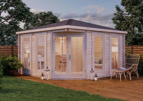 Vil du gerne have velvære og pleje helt hjem i haven? Så kan du her finde en sauna, som du kan tilføje til haven – og på den måde skabe et sted, hvor du kan finde ro og slappe af. Saunaen har et praktisk forværelse, som du kan pynte med bl.a. sofa, reoler, håndklæder og duftlys. Der er plads til hele 6 personer i saunaen, og derfor kan du med fordel bruge den sammen med familien.