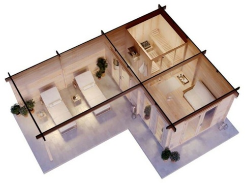 Det lille forrum har plads til at du kan pynte med sofa, planter m.m. for at skabe en afslappende og hyggelig stemning i rummet. Der medfølger: døre, vinduer, lås, bænke, nakkestøtter, håndtagssæt m.m. Du skal være opmærksom på, at den bliver leveret uden ovn, og derfor skal du tilkøbe én med effekt på 9 kW.
