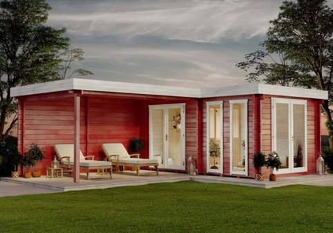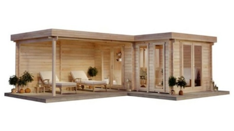 Quinta havesauna med overdækket terrasse og lille forrum