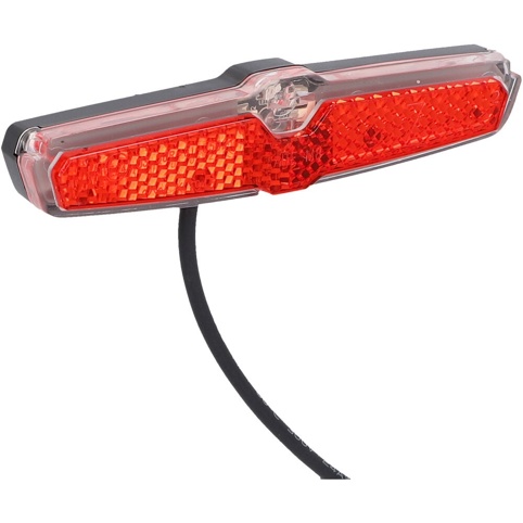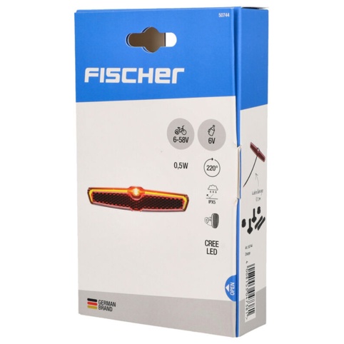 Har du en elcykel, kan du med fordel montere en baglygte som denne. Ebike-lygten fra Fischer tilkobles nemlig cyklens forsyningsspænding og sikrer derved, at du altid har lys, så længe der er strøm på cyklen. Lygten passer til spænding på 6-58 volt. Ønsker du ikke at tilkoble den til cyklen, kan lygten også bruges med en 6 V dynamo.