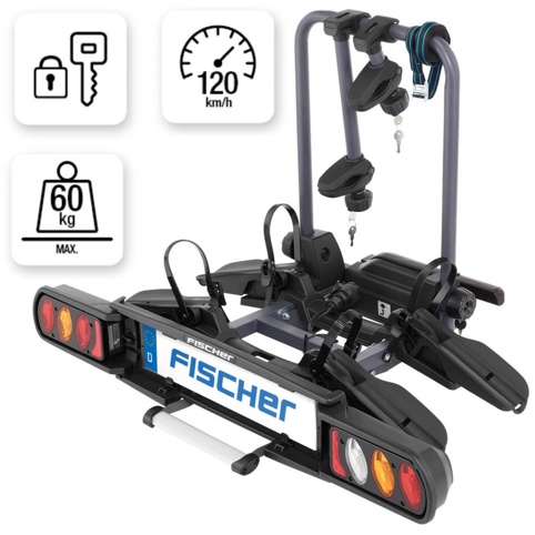 Mangler du en solid og praktisk løsning til transport af cykler? Fischer ProlineEVO-cykelholder monteres på bilens anhængertræk, og har plads til 2 cykler eller elcykler med en samlet vægt på op til 60 kg. Den er egnet til transport af cykler i størrelserne 12” til 29” og med en steldiameter på op til 6 cm. Cykelholderen kan vippes, mens den sidder på bilen, hvilket giver nem adgang til bagagerummet.