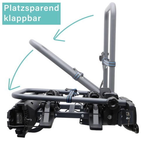 Cykelholderens hjulholdere er udstyret med brede plastremme, der har skraldfunktion, så du kan fastgøre cyklen nemt og sikkert. Skinneafstanden er ca. 25 cm og akselafstanden er maks. 125 cm. Når cykelholderen ikke er i brug, kan den foldes sammen så den måler 63 x 28 x 61 cm – det gør den nemmere at opbevare i garagen eller have med i bagagerummet. Cykelholderen har en egenvægt på 17,4 kg og leveres næsten helt samlet, så du hurtigt kan komme afsted.