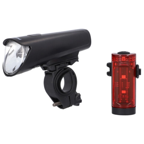 Dette sæt lygter består af en superklar forlygte med justerbar lysstyrke samt en rødlysende baglygte. Forlygten har en maksimal lysstyrke på 45 lux og kan justeres ned til 20 eller 10 lux, så du kan tilpasse den efter lysforholdene. Afhængigt af lysstyrken kan du bruge forlygten i op til 20 timer pr. opladning, mens baglygten har en brugstid på ca. 4 timer pr. opladning. Der medfølger micro-USB-kabel, så du nemt kan oplade lygterne. Begge cykellygter har et stænksikkert hus, og de kan bruges i al slags vejr. Der medfølger universalholdere, som gør det nemt at montere lygterne på cyklens sadelpind eller stellet.