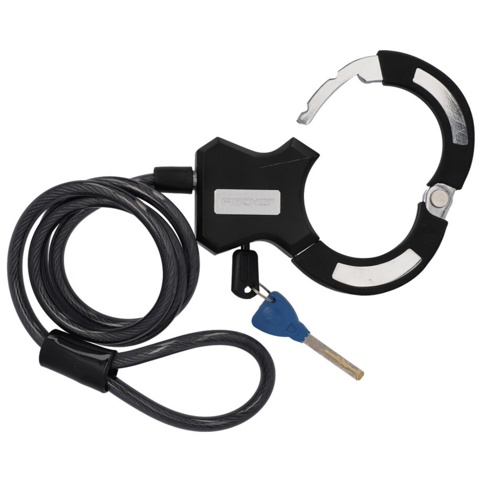 Vil du sikre din cykel mod tyveri, er denne cykellås ideel. Låsen består af en håndjernslås med en indre diameter på 74 mm, samt et kraftigt 10 mm tykt stålkabel, så du kan låse din cykel fast til en pæl, cykelstativ og lignende. Låsen har en samlet længde på 120 cm. Der medfølger 2 nøgler, hvoraf én af dem er med lysfunktion. Den er godkendt til sikkerhedsniveau 4, der typisk egner sig til dagbrug med mellemklassecykler og elcykler eller som ekstra sikkerhed for cykler i de høje prisklasser.