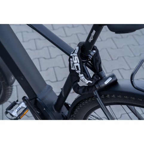 At have en stærk lås til en cykel er meget vigtigt, hvis du eksempelvis skal parkere den i byen. Denne kædelås fra Fischer er netop en robust og pålidelig lås. Den har et stofbetræk, som beskytter mod ridser på stellet. Den har en længde på 90 cm, så du kan låse cyklen fast til bl.a. cykelstativer og lygtepæle. Kædelåsen er særligt praktisk, fordi kun den ene ende af kæden skal låses.