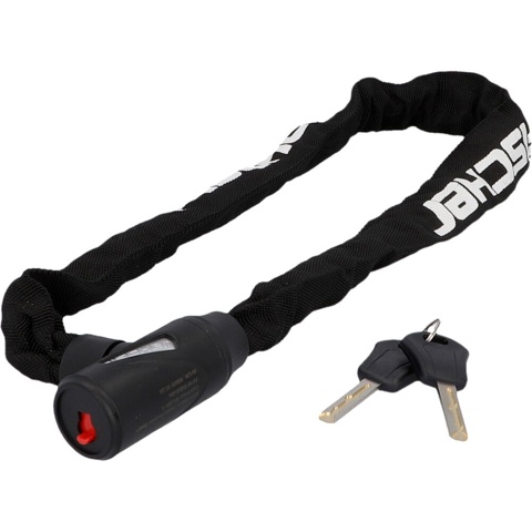 Cykellåsen har en nøglelås, og der medfølger 2 nøgler til den. Der medfølger også en praktisk velcrorem til fastgørelse af låsen. Den kan nemt transporteres ved at folde den kompakt rundt om sadelpindens rør. Kædelåsen er sort.