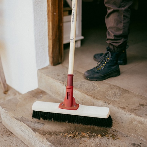 Med sit brede børstehoved og bløde børstehår er kosten perfekt til at feje savsmuld og andet skidt sammen i værkstedet, garagen eller kælderen. Kosten kender du måske også fra timerne i klasselokalet, og den har da også fået navnet ”skolekost”, da den er rigtig god til at feje mindre partikler indendørs, såsom sand, støv og mindre materialer.
