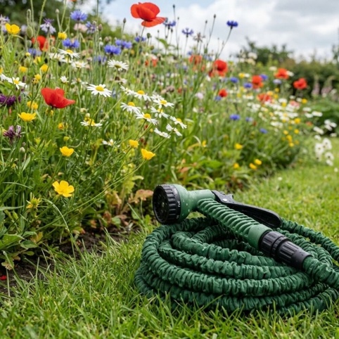 Det smarte ved denne vandslange, er fleksibiliteten. Vandslangen leveres sammentrukket med en længde på bare 7,5 m. Når der kommer vand gennem slangen, kan den dog udvide sig op til 3 gange, så den får en længde på hele 22,5 m. Når du slukker for vandet, vil vandslangen igen trække sig sammen. Det gør den langt nemmere at rulle sammen, og så fylder den meget mindre at opbevare. Flexslangen knækker i øvrigt ikke, og stopper på den måde ikke for vandet.