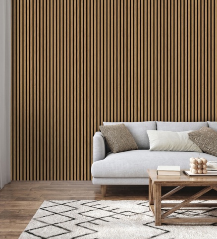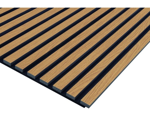 Akustikpanelet fra FN Acustico-serien har en folieret overflade efterfulgt af en MDF-plade. Bagsiden af akustikpanelet består af sort PET-filt med op til 60 % genbrugsplast (genanvendte PET-flasker). Polyesterfilten optager lydbølgerne og reflekterer det kun begrænset tilbage. Akustikpanelet måler 19 mm i tykkelsen, 572,5 mm i bredden og 2400 mm i længden. Du kan med en underkonstruktion øge lydisoleringen op til 60 %.
