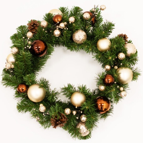 Med denne flotte, kunstige grankrans der er pyntet med grankogler og julekugler kan du tilføje en flot og enkel dekoration – brug den som ophæng på døre eller integrer den som dekoration i den øvrige julepynt. Kransen er fremstillet af PVC, og du kan genbruge den år efter år, uden du skal bekymre dig om at den fælder eller taber nåle.
