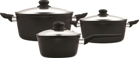 Dette grydesæt indeholder 6 dele: 1 stk. kasserolle på 1,3 L og 2 stk. gryder på 2,5 L og 4,3 L – alle kommer med tilhørende glaslåg. Gryderne og kasserollen har keramisk non-stick belægning, som sikrer, at maden ikke klæber eller brænder fast på gryden – det er derfor let at rengøre gryderne. Derudover har gryderne bakelit-håndtag, der giver et sikkert og behageligt greb, så du ikke brænder fingrene.