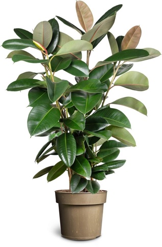 Dette skønne gummitræ er en kraftig og dekorativ stueplante med et markant, tropisk udseende. Den har store, ovale blade, der kan blive op til 30 cm lange, og som er tykke, glatte og skinnende mørkegrønne med en let læderagtig struktur. Bladene springer ud fra en robust, opret stamme, og de nye skud er ofte indhyllet i et rødligt hylster, der giver et diskret farvespil mod det grønne løv. Plantens tætte og oprejste form gør den til et elegant, men samtidig enkelt indretningsvalg, hvor den bringer et strejf af frodighed og ro til rummet.