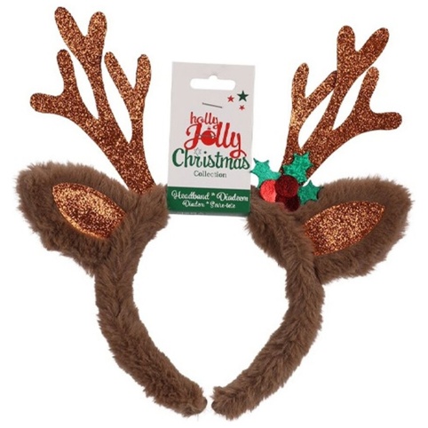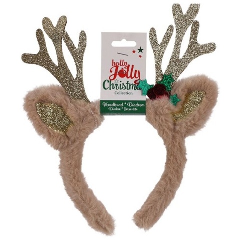Hårbøjlen nogle flotte og festlige glimmerdetaljer ved geviret og ørerne. Den er fremstillet af polyester og måler 30 cm x 25 cm x 2 cm. Rensdyr-hårbøjlen kommer assorteret i en af de 3 farver: beige, lysebrun eller mørkebrun. Denne vare er assorteret, og du kan ikke vælge farve online.
