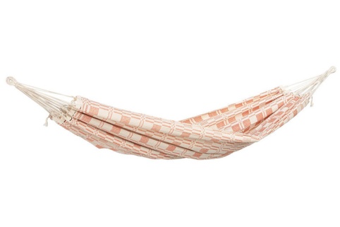 Der medfølger ikke beslag til montering. Hængekøjen er i farverne orange og beige. Kombinationen af de farverige og varme nuancer giver hængekøjen et strejf af brasiliansk charme. Dette skaber en stemning, der emmer af ferie, ro og livsglæde.