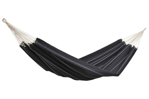 Denne hængekøje måler L: 340 cm x B: 150 cm og er fremstillet af genbrugsbomuld og polyester. Hængekøjen kan placeres i haven, på terrassen eller tages med på tur – f.eks. på campingpladsen. Den har en maksimal belastning på 200 kg. Der medfølger ikke beslag til montering. Hængekøjen er i farven sort og er med hvide striber.