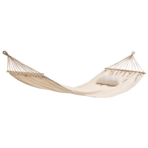 Hængekøjen er råhvid, hvilket giver den et flot og klassisk udtryk. Hvis du giver den en omgang tekstil-imprægnering inden brug, så gør du stoffet mere modstandsdygtigt over for snavs. Du bør altid tage hængekøjen med ind om natten, for at holde den pæn så længe som muligt. Du kan også opbevare den i din hyndeboks. Hvis du ønsker en hængekøje med flere farver på, så har vi også flere farverige hængekøjer.