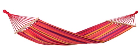 Hængekøjen kan placeres i haven, på terrassen eller tages med på tur – f.eks. på campingpladsen. Den har en maksimal belastning på 120 kg. Der medfølger ikke beslag til montering. Hængekøjen er i farverne pink, lilla og gul. Det brasilianske design giver dig farverig charme og en afslappet sydamerikansk stemning i ét.