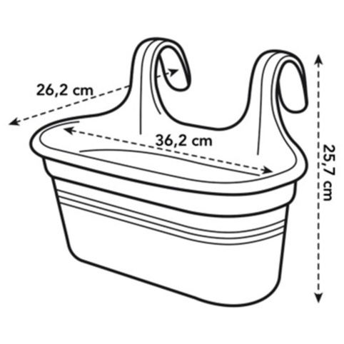 Det moderne design i en grøn farve gør den egnet til enhver terrasse. Den er desuden udstyret med integrerede hanke, så du kan hænge den direkte på din altans gelænder, så længe tykkelsen på gelænderet ikke er mere end 6,5 cm.