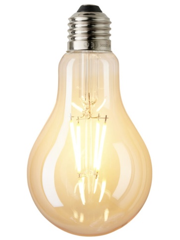 Pæren har et amberfarvet glas med filament-tråde indeni, som imiterer en gammeldags glødetråd. Den er med E27-fatning og har en effekt på 4 W.