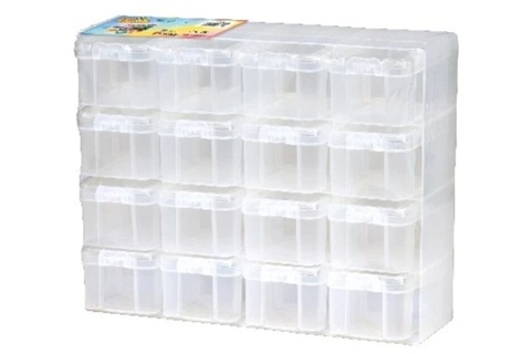 Er du på udkig efter en opbevaringsæske til alle dine perler? Så er denne opbevaringsæske med udtrækkelige rum helt ideel. Opbevaringsæsken er transparent, så du kan se indholdet i boksen udefra. Det er 4 etager i alt med 4 rum på hver etage, så der i alt er 16 rum til perler i forskellige farver. Opbevaringsæsken måler 22 cm x 28 cm x 8,5 cm.