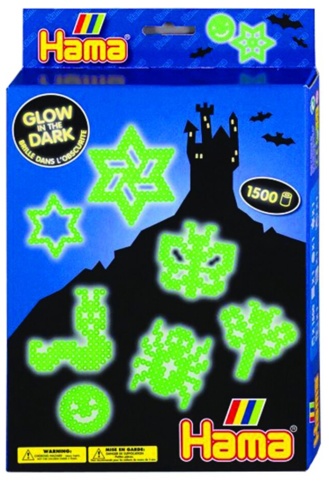 Denne komplette ophængsæske indeholder ca. 1.500 perler, 3 små perleplader (firkant, rund og stjerne), motivark, vejledning og strygepapir. Du får dermed alt, du skal bruge til at lave figurer med selvlysende perler, som du kan stryge og hænge op.
