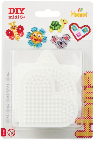 Dette sæt indeholder 5 små perleplader: firkant, rund, sekskant, hjerte og stjerne. De er dermed et godt udgangspunkt til at skabe flotte mønstre og motiver med. Bagefter kan din kreation stryges og gemmes, og perlepladen kan bruges på ny igen.