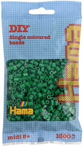Denne pakke indeholder 1.000 stk. perler i en grøn nuance og kan anvendes på alle perleplader og Bead-Tac-ark fra Midi-serien. Perlerne kan stryges for, at din kreation bliver fast, ligesom den efterfølgende også kan syes fast på tekstiler eller hænges op.