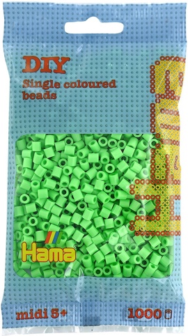 Denne pakke indeholder 1.000 stk. perler i en grøn nuance og kan anvendes på alle perleplader og Bead-Tac-ark fra Midi-serien. Perlerne kan stryges for, at din kreation bliver fast, ligesom den efterfølgende også kan syes fast på tekstiler eller hænges op.