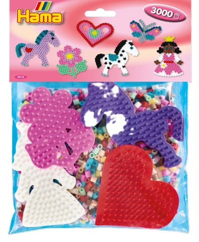 Dette komplette perlesæt indeholder ca. 3.000 blandede perler, 4 perleplader, motivark, vejledning og strygepapir. Du får dermed alt, du skal bruge til at lave flotte motiver i et sjovt tema med midi-perler og bagefter stryge og bevare de fine kreationer.