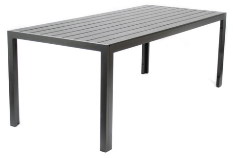 Bordet har et sort aluminiumsstel med non-wood-bordplade. Stolene har et stålstel og en skal af sort plastik og glasfiber med et flot mønster, der minder om fletstruktur. Stolen er behagelig at sidde i med god rygstøtte og armlæn.