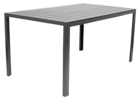 Bordet har et sort aluminiumsstel med non-wood-bordplade. Stolene har et stålstel og en skal af sort plastik og glasfiber med et flot mønster, der minder om fletstruktur. Stolen er behagelig at sidde i med god rygstøtte og armlæn.