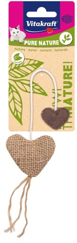 Kattelegetøj findes i mange variationer. Dette legetøj er formet et hjerte og er en finurlig måde at stimulere din kats jagtinstinkt på. Legetøjet består af to hjerter, der er forbundet af en snor. Det er en sjov og interaktiv måde at tilbringe tid med din kat på, hvor katten kan lege med og jage den. Kattelegetøjet er med catnip, som har en behagelig duft, der giver katten lyst til lege. Hvis legetøjet går i stykker, bedes det fjernes.