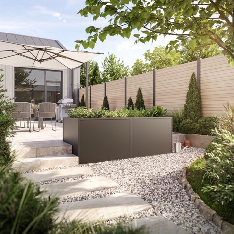Dette aluminium-højbed er en flot og holdbar ramme om dine blomster og planter, når du gerne vil skabe et mere gennemført udtryk i haven. Det rene profilsystem giver et elegant look, der passer naturligt ind ved terrassen, i gårdhaven eller som en dekorativ “ø” i haven, hvor du kan plante sæsonblomster, stauder og grønne planter. Højbedet er bygget med en ramme i aluminium, som hverken ruster eller rådner, og fyldet består af robuste aluminium-kompositplader. Samtidig er højbedet konstrueret, så du ikke behøver ekstra beskyttelse med folie indvendigt, og der medfølger et gnavergitter i galvaniseret stål, som hjælper med at beskytte beplantningen nedefra. Monteringen er gjort enkel med et smart plug-in/skruesystem, så du hurtigt kan få bedet på plads og komme i gang med at plante.