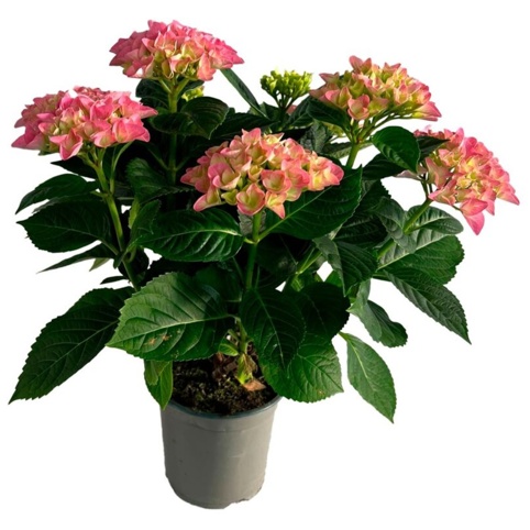 En klassisk hortensia med masser af fylde! Hydrangea macrophylla har store, dekorative blomsterkugler og friskgrønt løv, der giver et romantisk og frodigt udtryk. Med 4–6 grene får du en tæt plante, som er perfekt i krukker på terrasse og altan – eller som farverigt indslag ved indgangen.