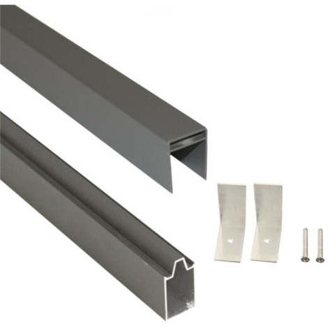 Du skal placere bundskinnen ovenpå de L-formede beslag, og herefter skal profilerne placeres mellem stolperne. Når den ønskede højde er opnået, lægger du topskinnen på det øverste profil, som vil give en flot afslutning på hegnsfaget. Begge skinner er fremstillet af aluminium og kommer i farven antracitgrå. Topskinnen måler L: 179,2 cm, og bundskinnen måler L: 181,4 cm. Der bruges 1 sæt top-/bundskinne pr. hegnsfag. Sættet bruges til 6x6 cm stolper.