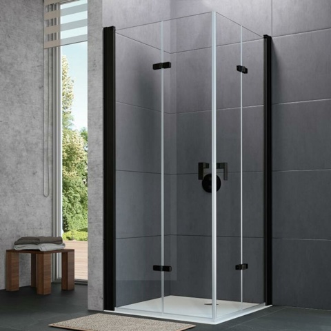 Elegant og enkel foldedør i sort til dit brusebad