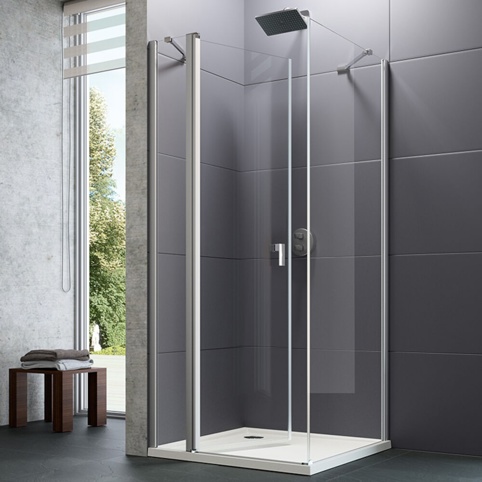 Der er flere muligheder for installation af Design pure-svingdøren: Du kan montere den som svingdør på en eksisterende bruseniche, du kan lave en ny bruseniche med svingdøren i kombination med et sidepanel, eller du kan bruge 2 svingdøre til at etablere en hjørneindgang. Der medfølger en 45° stabiliseringsarm, der fikserer det smalle glaspanel på væggen. Ved installation i en eksisterende bruseniche skal et profilsæt til væggen tilkøbes, så der sikres en blød og lydløs lukning af døren.