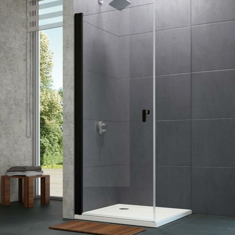 Skal dit brusebad afskærmes med en moderne svingdør med sorte detaljer, og vil du gerne have flot sandblæst glas i døren? Så kan du med fordel kigge nærmere på denne model med sandblæst glas og sorte aluminiumsprofiler. En brusedør, der vil afskærme dit badeværelse mod vandstænk uden samtidig at tage lyset i rummet. Tyske Hüppe har i årevis specialiseret sig i at levere kvalitetsløsninger til badeværelset, hvor design og praktik skal gå op i en højere enhed. Design pure er Hüppes klassiske serie af brusevægge, der er skabt af strømlinede, minimalistiske og udtryksfulde designelementer.