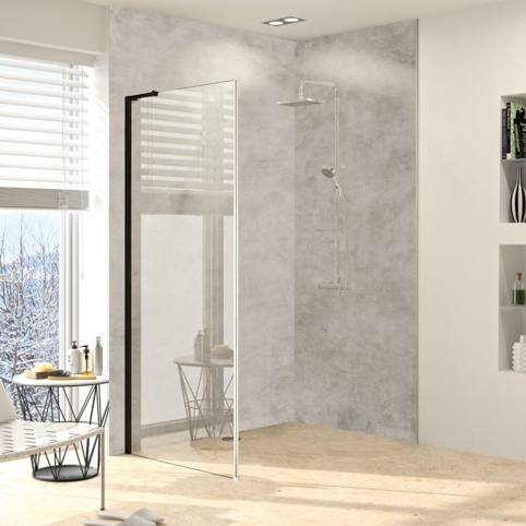 Mangler du et ekstra panel til din walk-in-brusevæg med skydedør fra Hüppes Xtensa pure-serie? Med dette sidepanel kan du skabe et flot afskærmet brusehjørne på dit badeværelse. Glaspanelet har samme matte sandblæste overflade som brusevæggen, og de sorte alu-profiler går ligeledes igen, så du får et helstøbt designindtryk.