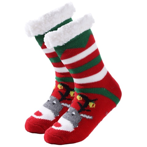 Varme, røde hyggesokker med Rudolf til børn